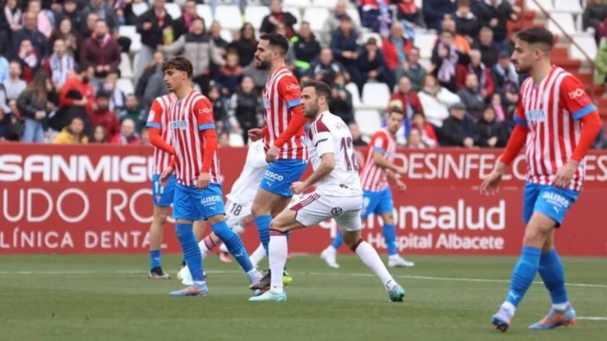 Los rojiblancos salen derrotados del Carlos Belmonte después de adelantarse en el marcador con un gol de Djuka. Dubasin y Maikel Mesa remontaron para los manchegos.