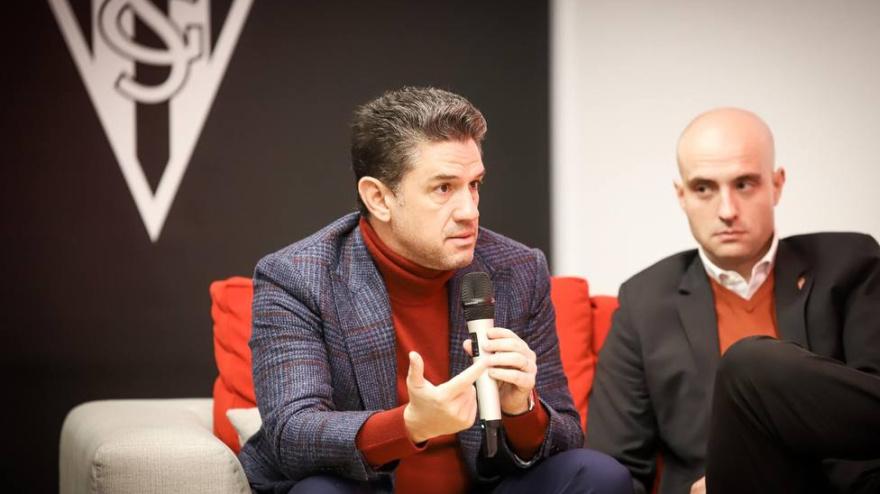 Alejandro Irarragorri y David Guerra estrenaron el 'Foro de Aficionados' respondiendo a las preguntas de los socios del Sporting en la sala de prensa de El Molinón.