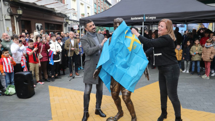 El jugador estuvo presente en la inauguración de la escultura en su concejo natal. Realizada en bronce, lucirá en las confluencias de las calles Alférez Argüelles y Rodríguez Ponga