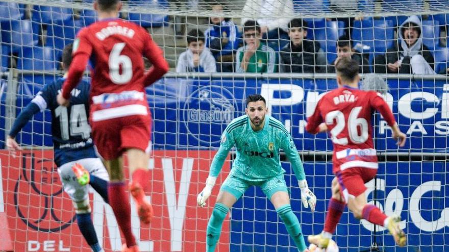 El meta balear firmó su mejor partido con la camiseta del Oviedo para sujetar a un Granada superior en la segunda mitad. Los azules esperan rival en dieciseisavos.