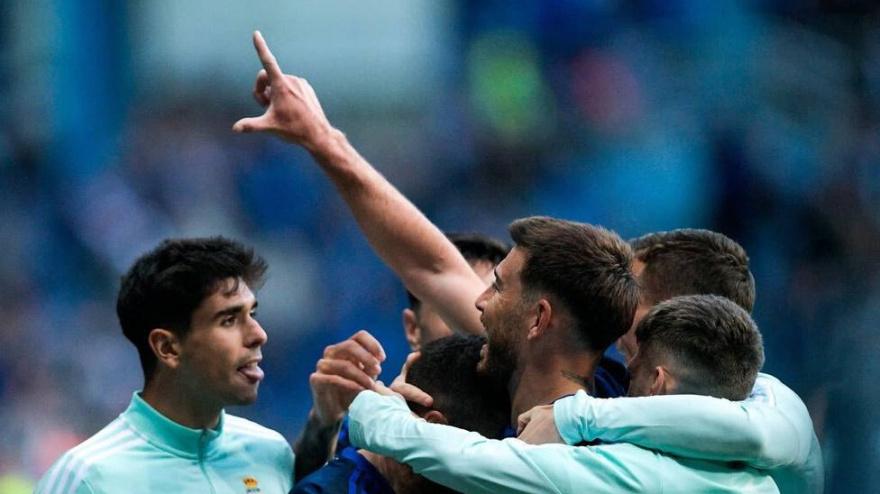 Triunfo balsámico para los azules que salen del descenso. El Oviedo jugó 50 minutos con un hombre menos por expulsión de Aceves. Sergi Enrich marcó un golazo de tacón.
