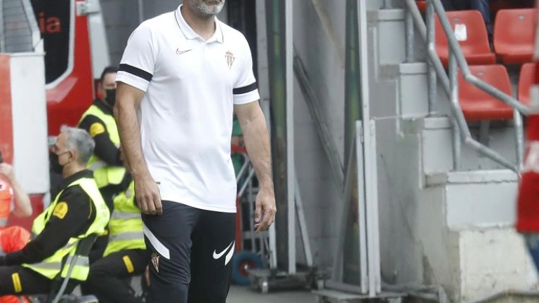 Contento y orgulloso el entrenador del Sporting con la reacción de su equipo después de la goleada encajada en Los Cármenes.