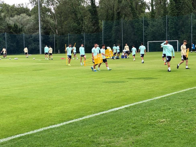 Con puntualidad, incluso antes del horario previsto, el nuevo Real Oviedo echó a andar. Poco antes de las 10:15, los 23 jugadores citados por el club para esta primera sesión saltaron al césped del campo número cuatro de El Requexón, escoltados por el nuevo cuerpo técnico, con Jon Pérez Bolo a la cabeza. Representantes de todos los estamentos del club, como el director deportivo Tito Blanco o el presidente Jorge Menéndez Vallina estuvieron presenciando la sesión, así como medio centenar de aficionados.
