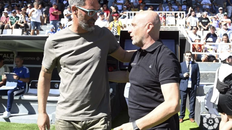 El técnico vasco del Real Oviedo estaba disgustado al final del partido con la primera parte de los suyos.