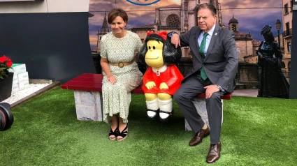 El alcalde de Oviedo y la alcaldesa de Gijón protagonizaron una conversación previa al duelo del sábado en el Carlos Tartiere.