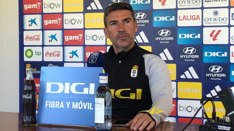 El técnico del Real Oviedo mantiene la ambición: "Tenemos que seguir para mantener esa posición o mejorarla"