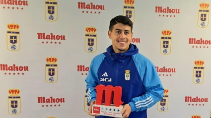 El jugador argentino del Real Oviedo recogió su premio a mejor jugador del mes de noviembre, el tercero que suma esta temporada.