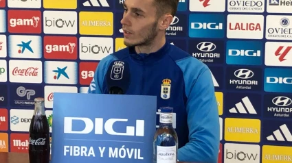 Llegada a Oviedo. “Muy contento desde que estoy aquí. Compañeros y cuerpo técnico me han acogido muy bien y eso da confianza. Es de agradecer. A veces llegas y es difícil adaptarte pero ha sido muy fácil”.