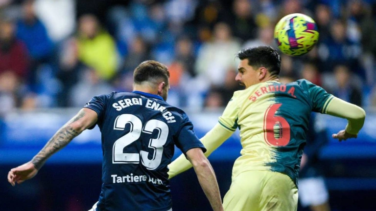 SERGI ENRICH: 7. Fue determinante con el gol del empate tras un gran cabezazo. Aporta trabajo y buen juego de espaldas, características similares a las de Borja Bastón.