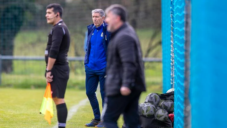 Paco Fernández compatibiliza su labor como entrenador del juvenil del Oviedo con su trabajo como profesor en un colegio. "La clave de este grupo es la disciplina que tienen".