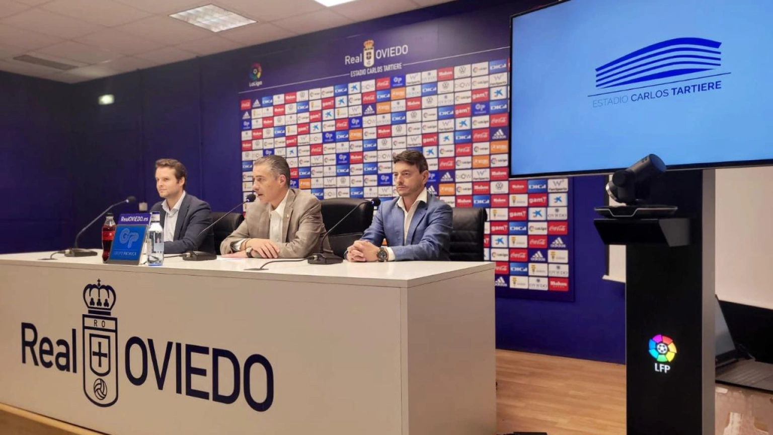 El Grupo Pachuca ya se ha puesto manos a la obra. El Real Oviedo trabaja en mejoras para el Carlos Tartiere, y este miércoles ha anunciado que elaborará un plan para realizar una serie de acciones que mejoren la experiencia en el estadio carbayón. También que se colocarán dos videomarcadores. Lo ha hecho en una comparecencia encabeada por el presidente Martín Peláez, que estuvo acompañado por representantes de MolcaWorld y de RPG Soluciones, las empresas que participarán.