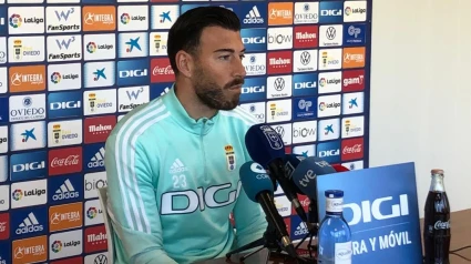 El delantero del Real Oviedo afronta un mes importante ante la baja de Bastón: "Estoy contento. Tal vez no se vea el trabajo que un míster sí ve"