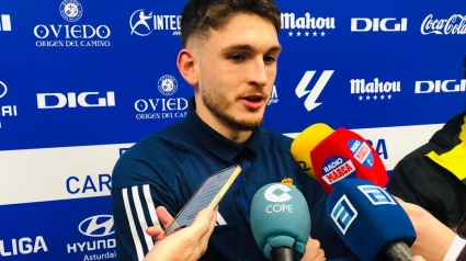 "El míster entró un poco cabreado al descanso", bromeó el canterano del Oviedo con la mejora del Oviedo en la segunda parte.