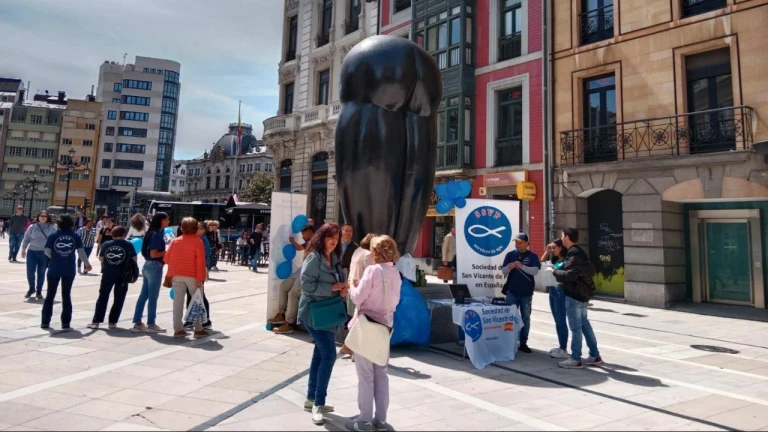 Los voluntarios y socios de la Sociedad de San Vicente de Paúl en Oviedo salen a la calle para dar a conocer su obra social en Asturias y buscar la colaboración ciudadana.