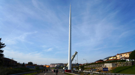 Oviedo iza el mástil de la pasarela que cambiará la entrada a la ciudad: "Es un hito"