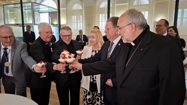 El alcalde de Oviedo y el Arzobispo de Oviedo, en la degustación de fresas con nata por el Corpus
