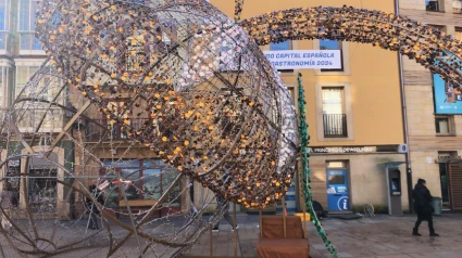 Lo confirma Germán Vizcaíno, responsable de la empresa instaladora: "Es una bellota. Cuando se encienda formará parte de toda la decoración de la plaza. Busca enlazar con la naturaleza, evoca el fruto de un árbol". Duda resuelta.