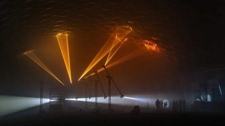 La obra parte de un concepto clave: la pleonexia, el deseo insaciable de poseer. Desde esta idea, el artista desarrolla una investigación visual sobre el exceso y sus consecuencias, tanto a nivel individual como colectivo, subrayando cómo afecta a nuestro entorno inmediato. El resultado es una instalación compuesta por ocho grúas que evocan un lugar deshabitado. Estas estructuras se activan en un preciso “ballet mecánico” que proyecta líneas de luz y formas orgánicas, creando una experiencia envolvente y ambivalente: acogedora y, al mismo tiempo, amenazante.