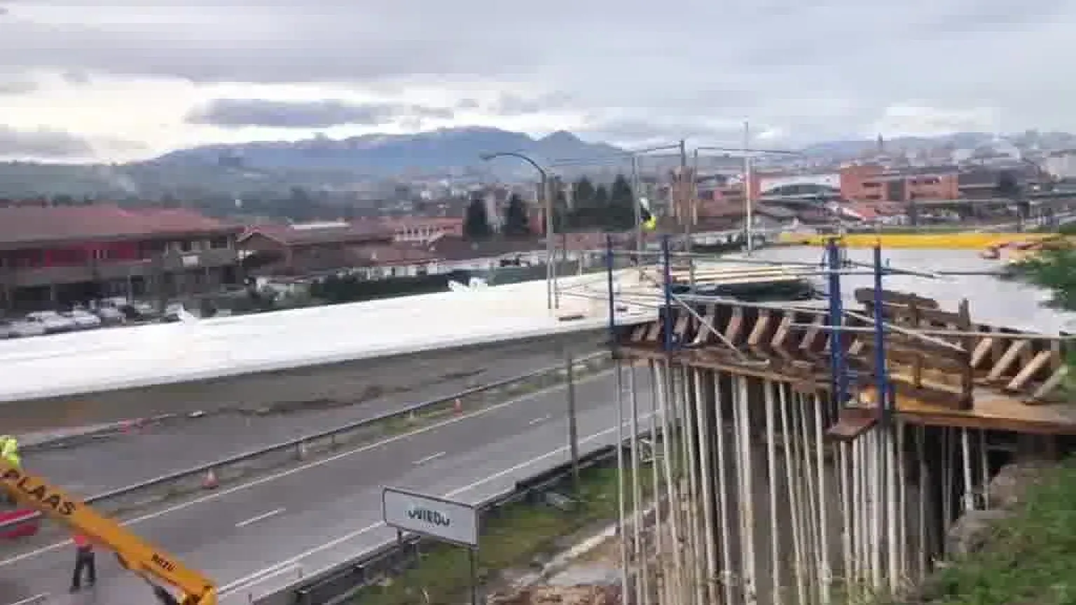 Así han instalado el primer tramo del 'arpa' de Santullano