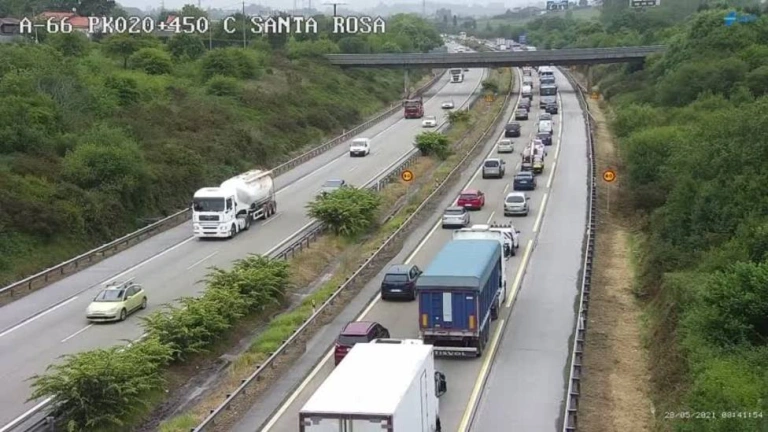Retenciones de hasta siete kilómetros en sentido Oviedo a la altura de las obras del tercer carril entre Lugones y Matalablima tras el siniestro, que deja un herido leve