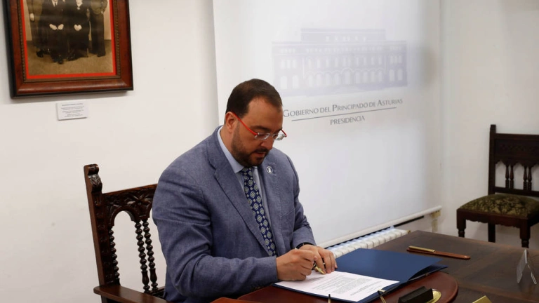 Barbón también ha firmado este lunes, en el despacho de Belarmino Tomás, el decreto de cese de los actuales consejeros y consejeras a los que ha agradecido el "duro trabajo" de estos años. "Si algo he encontrado en el actual consejo de Gobierno y me siento muy orgulloso de ello, es que siempre ha habido un clima de grupo, de equipo, que es difícil de conseguir porque siempre hay diferencias entre los consejeros, pero siempre ha reinado un buen ambiente, siempre hemos trabajado en el mismo sentido", ha dicho Barbón.