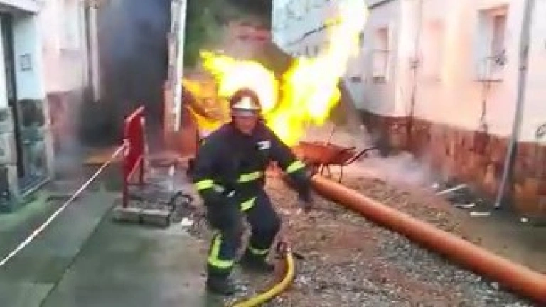 Espectacular escape de gas en Luarca. Ha sucedido a las 10:00 horas de este martes, en el barrio Arroxinas. El accidente se ha producido cuando un operario de las obras de remodelación que se están llevando a cabo en la zona ha picado la tubería del suministro. Ha sido atendido por los sanitarios porque sufre quemaduras leves.