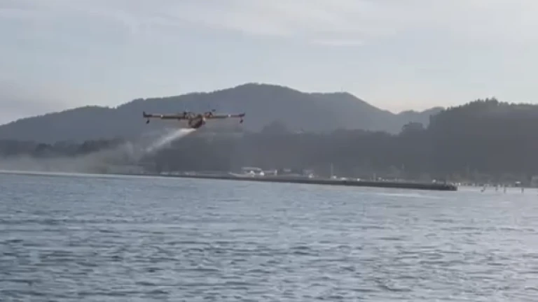 Así lucha Asturias contra los incendios: un hidroavión carga agua sin descanso en la desembocadura del Nalón