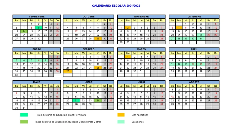 El calendario mantiene 177 días lectivos, a los que hay que descontar los dos festivos de cada concejo. El curso en Infantil y Primaria comenzará el 9 de septiembre y concluirá el 21 de junio. El 14 de septiembre se iniciarán las clases en Secundaria, que terminarán el 24 de junio.