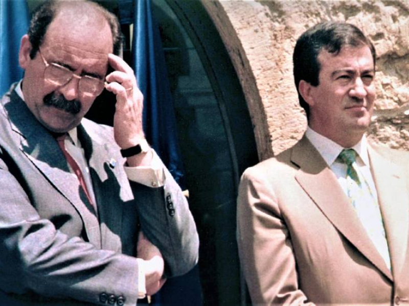 Sergio Marques y Francisco Álvarez Cascos durante la inauguración del Parador Nacional de Cangas de Onís, en junio de 1998