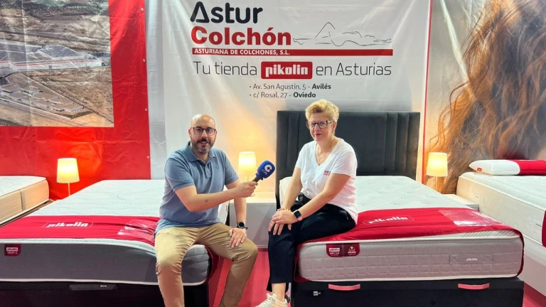 El programa especial que COPE Asturias emite desde la Feria Internacional de Muestras de Asturias (FIDMA) ha hecho un pequeño parón para el descanso en el Pabellón central a su paso por Asturcolchón. Tiene 43 años de trayectoria en el sector y es el principal distribuidor de la marca Pilkolin en el norte de España.