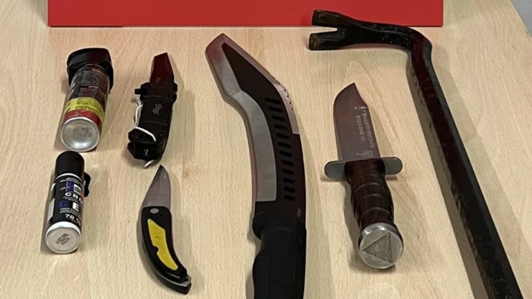 Los agentes vieron cómo sobresalía de la misma el mango de un machete de grandes dimensiones y, por tanto, procedieron a su registro. También localizaron un puñal, dos navajas y dos sprays de defensa personal, tramitándose las propuestas para sanción correspondientes.