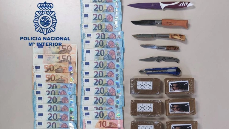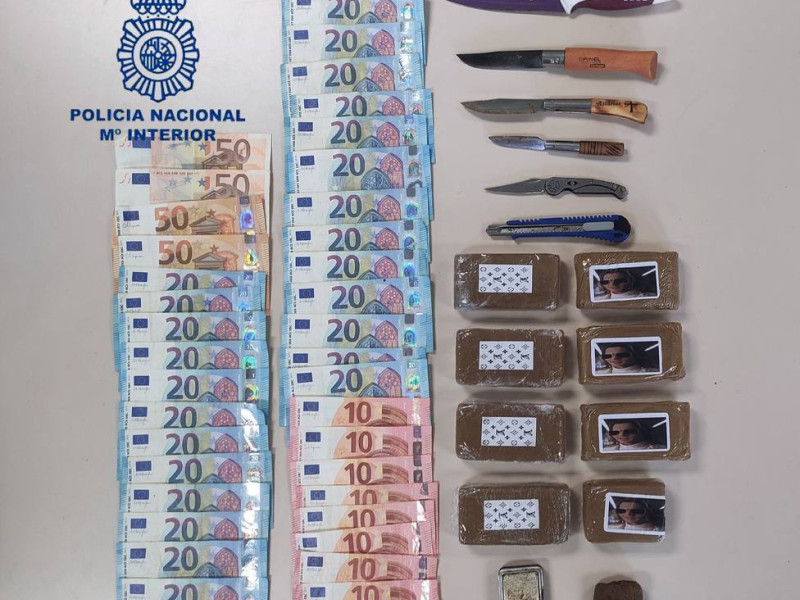 Fueron intervenidos 800 gramos de hachís, dinero y efectos para la manipulación y distribución de la droga