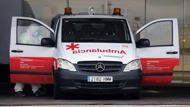 Ambulancia en la zona de urgencias del HUCA