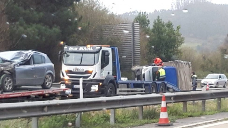 Doble accidente en la A-8 con heridos, cinco vehículos dañados y retenciones