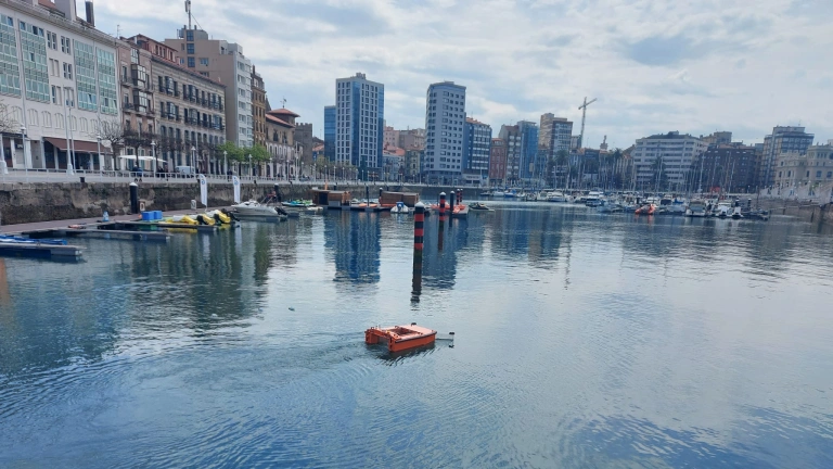 Un dron marítimo limpia el puerto deportivo de Gijón