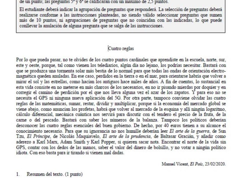 Textos de Manuel Vicent y Luis García Montero en el examen de Lengua, el reinado de Fernando VII y las alternativas políticas tras la muerte de Franco en el de Historia