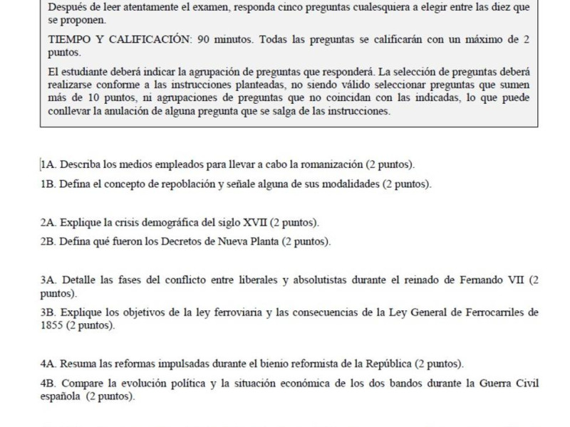 El reinado de Fernando VII, el binomio reformista de la República, la situación económica de los dos bandos de la Guerra Civil o las alternativas políticas que se proponían tras la muerte de Franco son algunos de los temas que han aparecido en el examen de Historia de España.