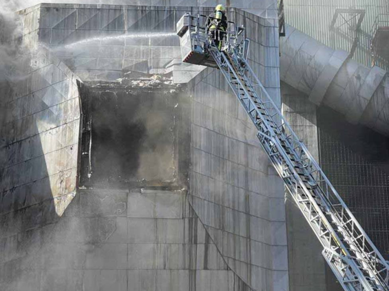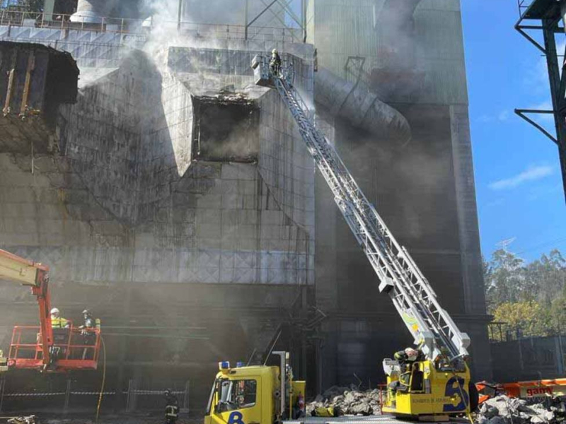 El incendio afecta, en la fachada, a la estructura de revestimiento aislante que se encuentra entre la parte interior de un silo de cenizas y la parte exterior del mismo.