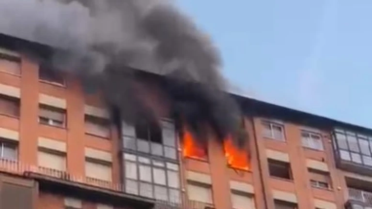 Espectacular incendio en Oviedo: las llamas calcinan un piso en Valentín Masip