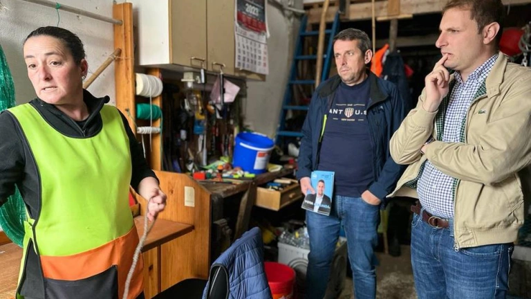 El candidato a la Presidencia del Principado, Adrián Pumares, ha estado este miércoles en Lastres, donde se ha reunido con varios pescadores del concejo de Colunga