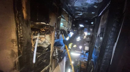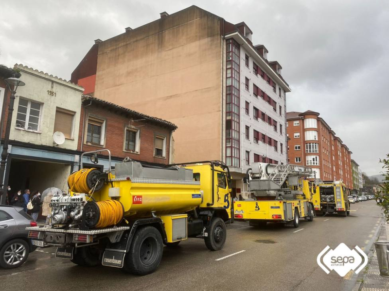 Un herido con quemaduras leves en el incendio de un piso en La Felguera