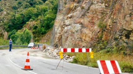 Aunque ya se han retirado las rocas caídas sobre la calzada, se mantiene el cierre ante el riesgo de nuevos desprendimientos en tanto no se consiga estabilizar el talud, en el que ha aparecido una grieta a casi 30 metros de altura.