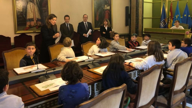 Los alumnos de 5º de Primaria del Colegio Público José Luis Capitán, de Colloto, se convierten en los protagonistas de la sesión plenaria del Ayuntamiento