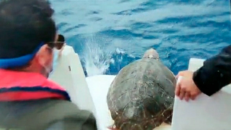 La evolución de la tortuga en estos meses ha sido favorable. En el chequeo realizado a principios de mes se observó una evidente mejoría de sus capacidades natatorias y de incremento de peso, hasta alcanzar los 54 kilos. Por ello, se decidió liberarla lo antes posible para que pudiese continuar su ruta migratoria.