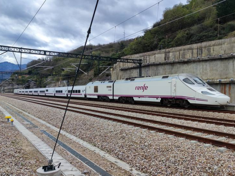 AVE tras cruzar en pruebas la Variante de Pajares