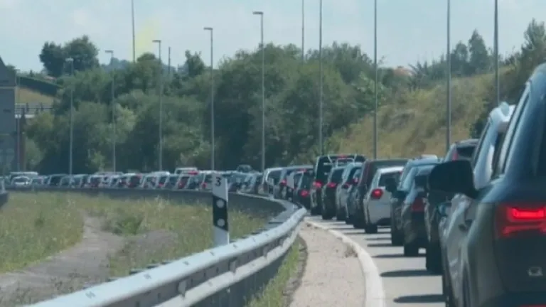 Monumental atasco en la 'Y' por el choque de un camión y un coche: 45 minutos parados