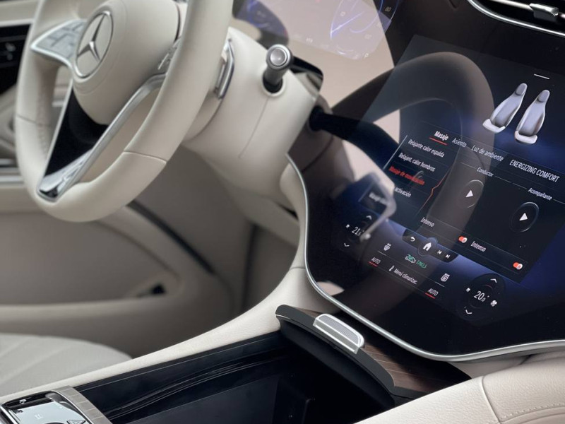 En el interior, destaca sobremanera la nueva y exclusiva pantalla MBUX Hyperscreen de hasta 56” distribuida en tres paneles que abarcan toda la anchura del tablero de instrumentos y presentan una calidad y nitidez impresionante con tecnología OLED.