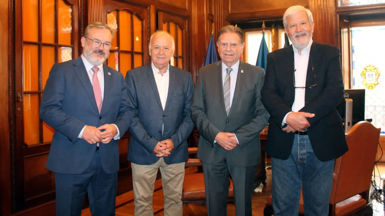 El alcalde de Oviedo, Alfredo Canteli, ha recibido este martes, junto al concejal de Hostelería, Turismo y Congresos del Ayuntamiento de Oviedo, Alfredo García Quintana, a los representantes de Capital Española de la Gastronomía, Mariano Palacín (presidente) y Pedro Palacios (director general), oficializando así el interés de Oviedo por lograr la designación.