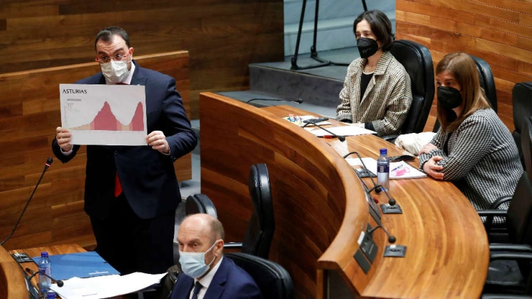 El presidente respondía a Blanco asegurando que las medidas puestas en marcha en Asturias para contener la pandemia funcionan, pidiendole que "no sea negacionista". "Da igual como pinte usted las cosas, nosotros escuchamos a la ciencia y no nos arrepentimos de las medidas que usted critica. El Gobierno de Asturias antepone salud y salva vidas, se ponga usted como se ponga", ha replicado Barbón al portavoz de Vox.