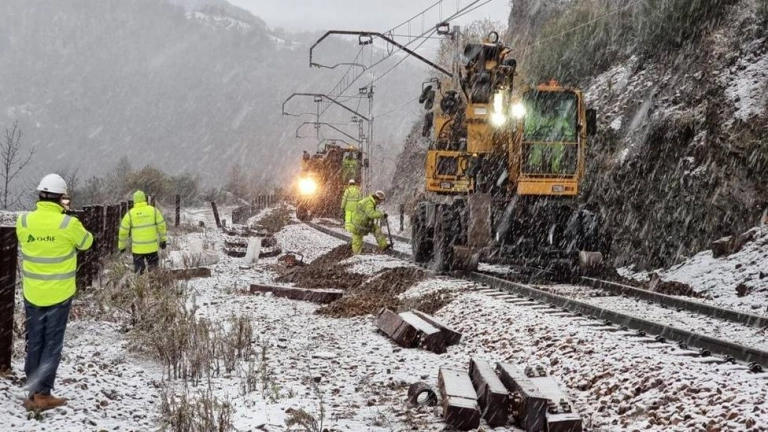 Los trenes vuelven a circular por la rampa de Pajares. 11 días después, ADIF ha restablecido la comunicación ferroviaria entre Asturias y León, que llevaba cortada desde el pasado 29 de noviembre, a causa de un desprendimiento de tierra.